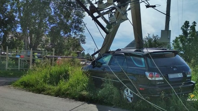 Иномарка протаранила столб линий электропередачи и оставила без света жителей поселка под Новосибирском