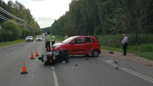 В сети размещены кадры аварии, произошедшей вечером в минувшую пятницу, 13 июля, неподалеку от поселка городского типа Правдинский в Пушкинском районе Подмосковья. Женщина, находившаяся за рулем автомобиля Kia, выехала с прилегающий дороги на Степаньковское шоссе. В тот момент, когда легковушка поворачивали налево, в нее врезался мотоцикл. Судя по кадрам записи, мужчина, управлявший двухколесным транспортным средством, завалил мотоцикл заранее и влетел в авто уже "лежа". После столкновения легковушку развернуло, и она продолжила движение после непродолжительной остановки. В результате этого маневра Kia совершила наезд на байкера и его пассажира, лежавших на асфальте. Как утверждают очевидцы, водитель мотоцикла – мужчина 1990 года рождения, скончался от полученных травм, а его пассажир был доставлен в больницу с серьезными повреждениями.