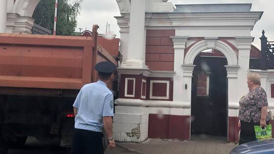 Кто-то слишком много ест. Грузовик застрял в арке Кировского РОВД