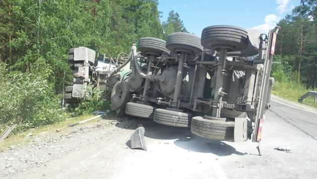 На Серовском тракте сегодня произошла авария, в которой пострадало сразу несколько машин. Груженные цементом Freelander и Iveco ехали по Серовскому тракту в сторону Екатеринбурга. Перед поворотом на базу отдыха «Селен» велись ремонтные работы на дорожном полотне: укладывали новый асфальт. Предупреждающие знаки о сужении трассы и снижении скорости там были, однако, по предварительным данным, цементовоз Freelander не успел вовремя затормозить, начал принимать влево и столкнулся с Iveco. Iveco отбросило, Freelander ударился о дорожный каток, ушел налево и перевернулся. Водителя выбросило из кабины, а груженый кузов упал на Daewoo Nexia, смял ВАЗ-2114, Lexus RX300 и немного «газель». Водителя перевернувшегося цементовоза нашли лежащим на обочине на противоположной стороне дороги. Машины, на которые упал цементовоз, принадлежали дорожникам, они были пустыми. Так что травмы получил только водитель Freelander. Представитель ГУ МВД по Свердловской области Валерий Горелых заявил, что прокомментирует случившееся по итогам расследования.