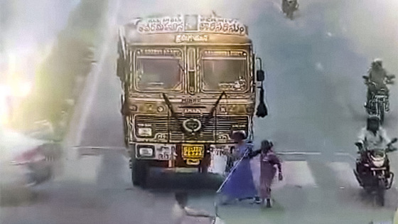 Когда смотришь такие ролики, то в голове не укладывается, как подобное может происходить в современном мире, пусть и не в самых благополучных странах. В данном случае речь идет об Индии. И хотя она славится своим ужасным уличным движением, однако это слишком даже для нее. Девушка помогает перейти дорогу бабушке, и никто не думает их пропускать. А многотонный грузовик и вовсе наезжает на женщин и уезжает дальше. Судя по тому, как он подпрыгнул, он даже проехал по кому-то из женщин. При этом абсолютно никто не обращает никакого внимания. Очень хочется надеяться, что люди просто не поняли, что случилось. Иначе теряешь веру в человечество.