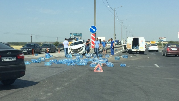 Шоссе на месте аварии усыпано бутылками Занятное ДТП произошло сегодня утром неподалеку от Ростова. На трассе по направлению в Чалтырь столкнулись «Газель» и «Киа Рио». Грузовик вез багаж в виде бутылок с питьевой водой. Об этом в социальных сетях сообщил один из очевидцев. — Не очень доброе утро у доставщиков чистой воды. Полдороги усыпано бутылками, — написал автор сообщения. Сейчас на шоссе из-за аварии образовался автомобильный затор. — Это случилось на въезде в Ростов со стороны Чалтыря неподалеку от хутора Ленинаван. Там небольшая пробка. Жертв нет, — рассказал 161.ru другой очевидец Сергей Чагаев. Причины ДТП сейчас устанавливаются. Прошлая неделя была богатой на ДТП. Например, в пятницу два автомобиля не поделили дорогу в Ростове рядом с торговым центром «Сокол». По версии очевидцев, водитель ВАЗ-2107 проехал на красный свет и не пропустил «Мерседес», поворачивавший на зеленый. К счастью, обошлось без пострадавших.
