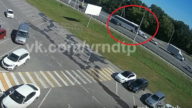 Момент массового ДТП с участием рейсового автобуса под Воронежем попал на видео