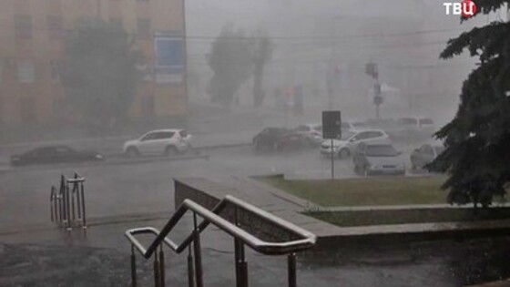 Застигнутые ураганом на улице мужчины с риском для жизни пробираются в укрытие. Сверху вместе с пенопластовым утеплителем падают сорванные ветром металлические листы кровли. Стихия накрыла Пермь днем в пятницу. Шквалистый ветер, достигавший 25 метров в секунду, не только гнул, но и ломал как спички деревья, валил светофоры и дорожные знаки, передает "ТВ Центр". В самом центре города на улице Луначарского строительный забор обрушился на несколько припаркованных автомобилей – обошлось без пострадавших. Не выдержали десятки легких конструкций. Почти сразу началась гроза с ливнем и градом. За стеной дождя трудно было что-либо различить даже вблизи. Жители Перми стали свидетелями необычного природного явления. Меньше чем за полчаса в городе выпало 15 миллиметров осадков. В большинстве районов ливневая канализация не справилась с последствиями дождя. На улицах машины уходили под воду по капот и, проезжая, поднимали волны. Невозможно было различить дорожную разметку и уберечься от попадания в ямы. Резко упала скорость движения. Оказалась нарушена работа общественного транспорта. После урагана без электроэнергии остались 25 населенных пунктов Пермского края - это почти восемь тысяч жителей. Возникли проблемы с телефонной связью и интернетом. Аварийные бригады начали восстановительные работы. По данным метеорологов, грозовой фронт сейчас движется в сторону Свердловской области. Там порывы ветра могут быть еще более сильными. Егор Киселёв, "ТВ Центр".