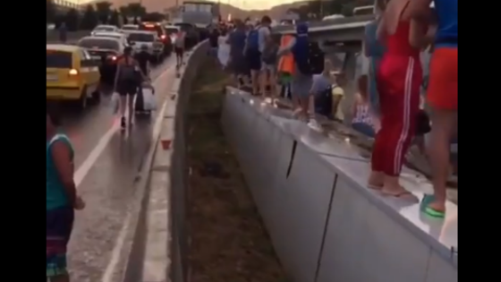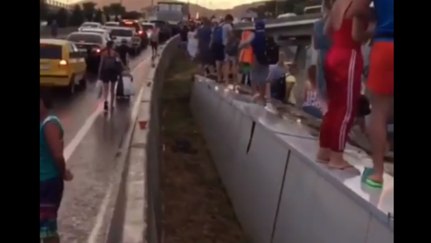 Очевидцы выложили в сеть соответствующее видео. На нем пассажиры с багажом пытаются хоть как-то добраться до железнодорожного вокзала в Адлере. Напомним, как сообщал автопортал «За рулем Кубань», вчера в ходе проливных дождей под водой оказалась участки трассы в Хостинском и Адлерском районе курорта. На некоторых отрезках дороги скорость не превышала 2 км/ч. Люди, отправившиеся на вокзал на такси, арендованных автомобилях или другом транспорте, застряли в жесткой пробке. С маленьким детьми, с багажом им пришлось продвигаться по парапету и обочине проезжей части пешком, чтобы успеть на поезд. Однако, судя по сообщениям в соцсетях, многие все-таки опоздали.