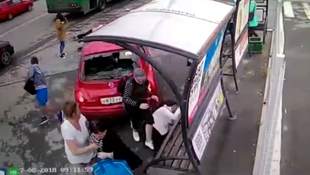 Невероятные маневры владелицы Nissan Micra на остановке близ Южного автовокзала Екатеринбурга обернулись серьезными травмами для двух пешеходов, сообщает E1.ru. Камера наблюдения зафиксировала момент наезда. ДТП произошло около 09:30 утра в пятницу, 17 августа, на улице Щорса. Женщина, как рассказала очевидец произошедшего, припарковалась на автобусной остановке, встретила родственницу и собиралась уезжать. Она первый раз сдала назад, так что чуть не сбила людей, но успела вовремя остановиться. Спустя секунду малолитражка рванула вперед и протаранила стоявшую неподалеку машину, фактически вытолкав ее на проезжую часть, а затем вновь резко тронулась назад. Набрав скорость, красный Nissan сбил вышедшего из автобуса пенсионера с тростью, женщину и молодого человека, а остановил "разрушительный поход" только павильон остановки. "Водитель сказала, что у неё что-то с машиной, что-то заклинило. Но её чуть не убили таксисты-свидетели!" — поведала свидетель ДТП. По ее словам, после наезда владелица машины долго разговаривала с кем-то по телефону, не обращая внимания на пострадавших. Пожилого мужчину и женщину госпитализировали, третьего пострадавшего отпустили домой.