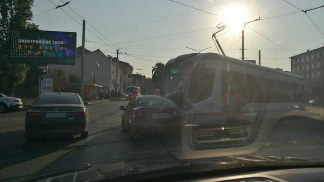 В центре Ростова трамвай протаранил Chevrolet