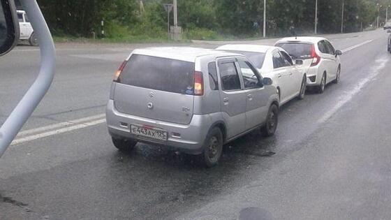 В субботу, 18 августа, на повороте на станцию Надеждинская столкнулись три автомобиля, сообщает PRIMPRESS со ссылкой на dps_control. По словам очевидцев, малолитражка планировала повернуть в сторону поселка и остановилась. За ней притормозил седан, в который и врезался третий автомобиль, в результате чего он протаранил первый авто. О пострадавших не сообщается.