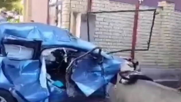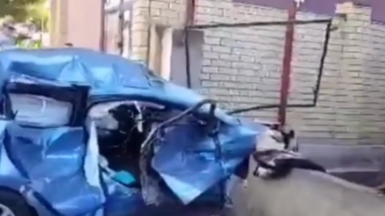 Легковушку сильно покрежило после ДТП в Анапе