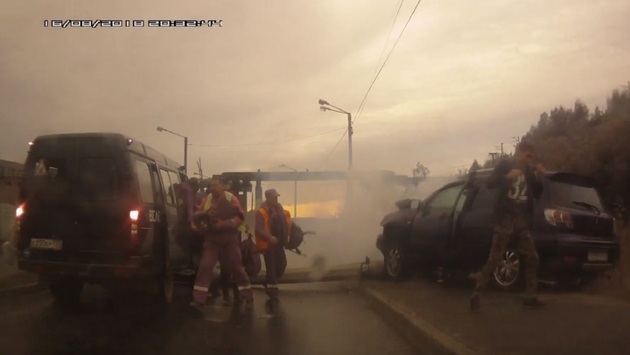 Очевидец аварии, произошедшей вечером в минувший четверг, 16 августа, на улице Подгорной в Мурманске, разместил в сети запись момента столкновения, попавшего в объектив регистратора его автомобиля. Водитель кроссовера Mitsubishi не справился с управлением на мокрой дороге и вылетел за пределы проезжей части, где врезался в бетонный столб, после чего машина загорелась. Световая опора не выдержала удара и рухнула поперек дороги прямо перед "Газелью" в которой находились рабочие. Как сообщает пресс-служба УМВД РФ по Мурманской области, в результате ДТП травмы получили два пассажира Mitsubishi – девушка 1996 года рождения и молодой человек 1992 года рождения. Пострадавшим потребовалась госпитализация.