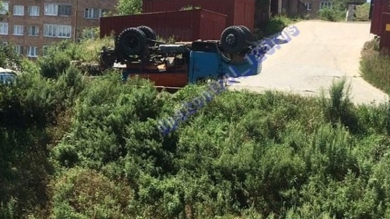 Во Владивостоке грузовик перевернулся на крышу, съезжая задним ходом