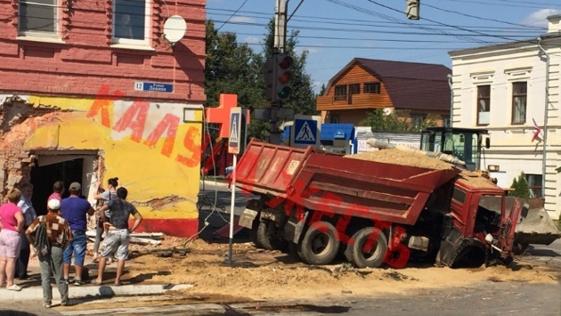 Вместо двери у аптеки на улице Ленина в Тарусе теперь арка. Арка появилась после того, как в аптеку утром 19 августа врезался груженый песком КамАЗ и вынес двери. На это здание грузовик отбросило после столкновения с другим КамАЗом, который также вез песок. Водителю второго КамАЗа каким-то чудом удалось ничего не разрушить и никого не задеть, когда машина вылетела на тротуар. Главное управление МЧС России сообщает об одном пострадавшем. Предположительно, речь идет о водителе того КамАЗа, благодаря которому здание аптеки обзавелось аркой. Информация уточняется.