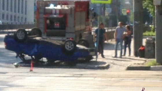 Машина легла на крышу в центре Нижнего Новгорода
