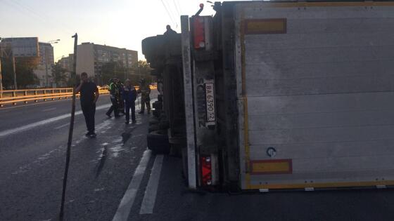 На Щелковском шоссе утром 22 августа перевернулась груженная макулатурой фура. Об этом сообщил корреспондент «360». Источник фото: телеканал «360» Авария произошла возле дома 26 по Монтажной улице. Грузовик слишком круто повернул на магистраль и опрокинулся. По дороге разлилось топливо из упавшей машины. В результате ДТП пострадавших нет. На месте работают инспекторы ГИБДД и сотрудники МЧС. Чтобы поставить перевернувшийся большегруз обратно на колеса, скорее всего, придется выгрузить 20 тонн макулатуры.