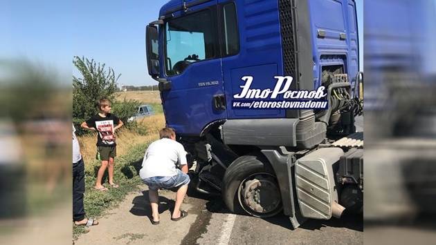 Под Ростовом столкнулись «Нива» и грузовик: прицеп перекрыл трассу