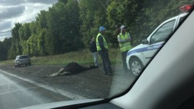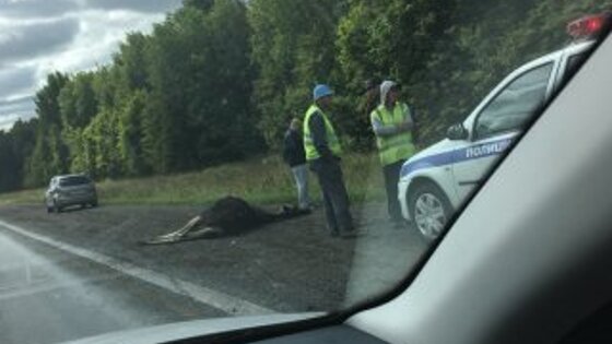 В Башкирии автолюбители на автомобиле «Нива» сбили лося. Как сообщают пользователи соцсетей, авария произошла на 38 километре трассы Уфа – Оренбург. От удара животное погибло. На место прибыли сотрудники ГИБДД. По словам очевидцев, это была беременная лосиха. Ни водитель, ни пассажиры авто, среди которых были двое детей, не пострадали. Очевидцы также отмечают, что это не первый случай на данном участке трассы. Дорогие читатели! Приглашаем Вас присоединиться к обсуждению новости в наших группах в социальных сетях - ВК и Facebook