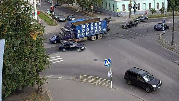 Мусоровоз протаранил легковушку в Петрозаводске (ВИДЕО)