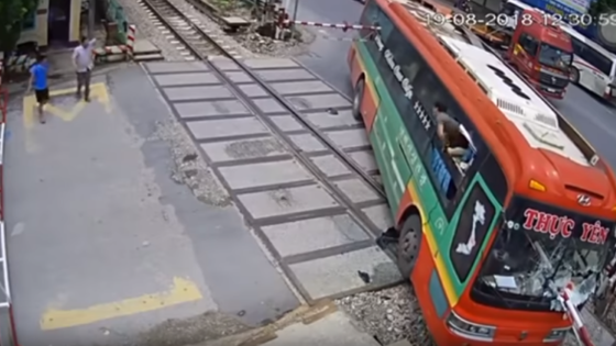 Железнодорожный шлагбаум протаранил автобус во Вьетнаме (видео)
