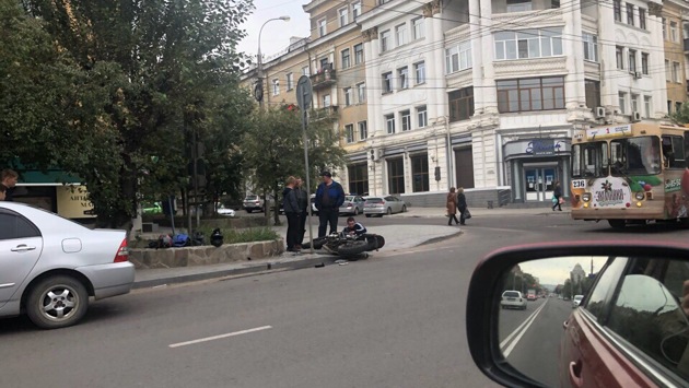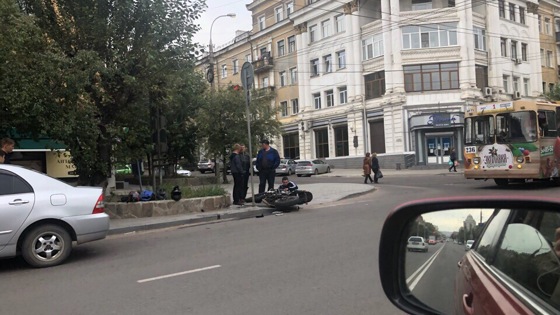 Мотоцикл врезался в BMW в центре Читы, есть пострадавший