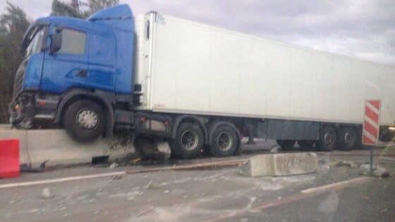 На мосту через Тверцу на трассе М-10 фура снесла ограждение и парализовала движение