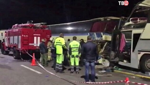 Из разбитого салона спасатели эвакуируют пострадавших. От чудовищного удара двери заклинило. Кабину раздавило как фольгу и вмяло в салон. Приходится вытаскивать людей через окна. Тем, кто может идти, помогают добраться до реанимобилей, передает "ТВ Центр". В Воронежской области на трассе "Дон" минувшим вечером столкнулись два междугородних автобуса. Ехавший "Неоплан" протаранил стоящий на обочине "Вольво". 4 человека погибли на месте. Это пассажиры, которые находились на передних сидениях. Позже, в больнице, скончалась и женщина, получившая тяжелейшие черепно-мозговые травмы. В момент удара многие уже спали. И не сразу поняли, что произошло. Несколько человек оказались зажаты между креслами. Сухая дорога. Хорошая видимость. Вдоль трассы отбойники с ночными отражателями. Казалось, не заметить, стоявший "Вольво" водитель "Неоплана" просто не мог. Кстати, он уцелел и рассказывает, что за секунды до столкновения перестраивался из ряда в ряд и якобы поэтому слишком поздно увидел препятствие. Эти показания сейчас проверяют следователи. Вместе с версиями о том, что водитель мог уснуть за рулем или ехать с превышением скорости. Впрочем, у правоохранителей немало вопросов и к водителю второй машины. Например, почему он остановился там, где это делать запрещено. И почему вышел в рейс на неисправном автобусе. Съехать с полотна его якобы вынудила поломка в топливной системе и двигателе. Водить заметил, как подтекает солярка. И решил припарковаться, чтобы устранить неисправность. В ходе разбирательства полицейские выяснили, что автобусы выполняли не регулярные рейсы. И принадлежали частным компаниям. Оба транспортных средства, направлялись из Москвы в Северо-Кавказский регион. Один в Черкесск. Второй в Пятигорск. Кого признают виновным, пока неясно. Прокуратура завела уголовное дело по статье 264-ой - нарушение правил дорожного движения, повлекшее гибель людей. Тимур Абдуллаев, "ТВ Центр".