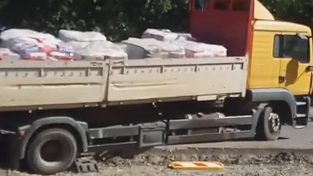 Ловушка на бездорожье: в Симферополе дорожная спецтехника вызволяет фуру