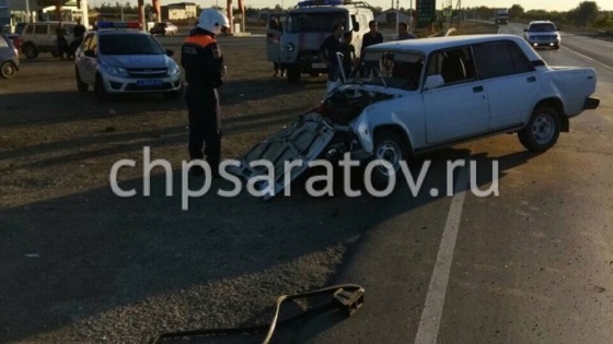 В Марксовском районе Саратовской области произошла авария. Двигавшись со стороны села Подлесное, «ВАЗ 2107» врезался в идущий навстречу фургон «Mercedes». Травмы средней тяжести получили два человека из «семёрки». Их госпитализировали в больницу медики «скорой помощи». У легковушки полностью помяло переднюю часть. «Вряд ли машина подлежит восстановлению», - отметили очевидцы. На место происшествия выезжали сотрудники Областной службы спасения и инспекторы ДПС, сообщает ЧП-Саратов.