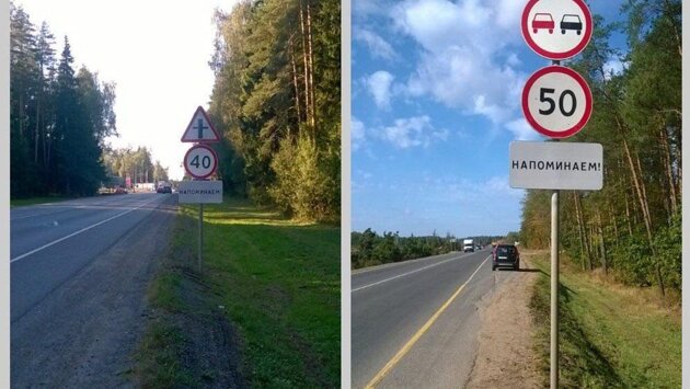 В Подмосковье установили дорожные знаки «Напоминаем!». Они должны напоминать водителям о соблюдении правил