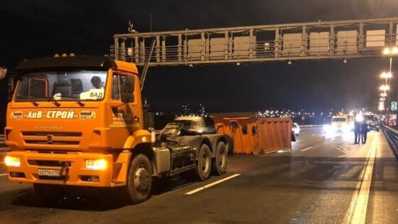 Грузовик потерял кузов на мосту в Санкт-Петербурге