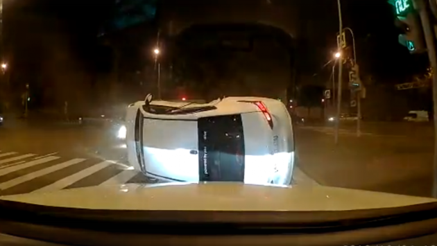 6 октября — РАН24. В Петербурге легковушка перевернулась от столкновения и почти врезалась в автомобиль, стоящий на светофоре. Темная машина протаранила белую иномарку. Другая опрокинулась на боковую часть и прокатилась по асфальту несколько метров. Изначально в салоне никто не подавал признаков жизни, но прошло время и открылась искореженная дверь автомобиля. К водителю на помощь поспешил очевидец. Обошлось без пострадавших. Виновника аварии предстоит выяснить инспекторам.