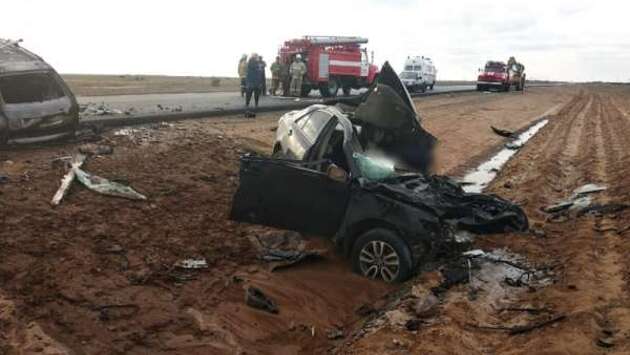 "В воскресенье днем в Енотаевском районе вблизи села Ветлянка произошло лобовое столкновение двух легковых автомобилей. Одна машина сгорела. Погибли четыре человека", - сказал источник.