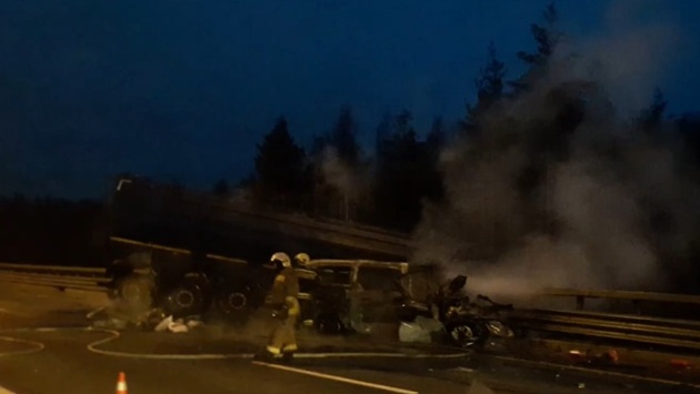 Водитель, ехавший следом за злополучным автомобилем Hyundai Starex, ставшим участником страшной аварии, произошедшей вечером в субботу, 27 октября, на Западном скоростном диаметре в Санкт-Петербурге, рассказал, что чудом избежал столкновения. "Вот тормозной след, еще бы чуть-чуть, и все, мы бы так же горели", — говорит мужчина, снимающий на видео горящие автомобили в первые минуты после трагедии. "Чудом, судьба, я не знаю — Бог дал жизнь еще", — произнес водитель, явно шокированный увиденным. Напомним, что грузовик Iveco столкнулся с попутным большегрузом Scania, перескочил на полосу встречного движения через разделительное ограждение, и столкнулся с микроавтобусом Hyundai Starex. После аварии машины загорелись. В результате ЧП погиб водитель и семь пассажиров Hyundai, мужчина, управлявший грузовиком, вылетевшим на "встречку", госпитализирован в тяжелом состоянии. По факту произошедшего возбуждено уголовное дело по статье "Нарушение правил дорожного движения и эксплуатации транспортных средств, повлекшее по неосторожности смерть двух или более лиц".