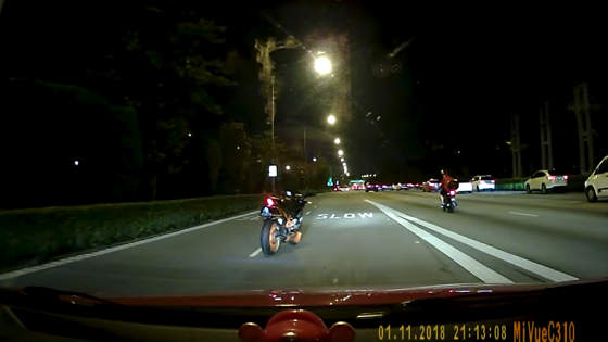 Не каждый день можно встретить на трассе самостоятельно передвигающийся мотоцикл, но это наверняка выглядело очень странно Представьте, что вы едете по трассе, а тут из ниоткуда появляется мотоцикл без водителя и едет по прямой. Именно так и произошло в Сингапуре с автором этого видео, которое было снято на авторегистратор. Мужчина толкал машину, чтобы завести, но не смог ее догнать – угарное видео>> На кадрах видно, как авто едет по примыкающей к автомагистрали дороге, и перед самым выходом перед водителем появляется мотоцикл без водителя и с включенным поворотником. Въехал двухколесный транспорт на линию медленно, но прямо. В конце мотоцикл замедлился, начал ездить, поворачивая влево-вправо, и в конце въехал в кусты. Как утверждает водитель авто, он сильно удивился тому, что увидел, но поблизости нигде не было видно бегущего за своим транспортом водителя. Пользователи Сети же в шутку посчитали, что это был гонщик-призрак. А учитывая, что в конце он начал ездить зигзагами, – еще и пьяный.