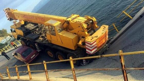 Технические службы муниципалитета подчеркивают, что эта часть моста не рассчитана на вес крана, который проезжал по нему.