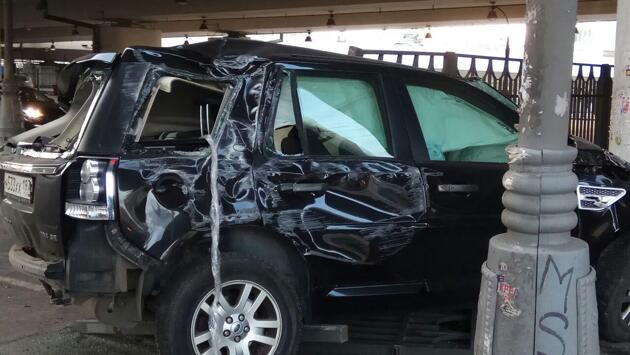 Инцидент произошел ранним утром 14 ноября на развязке ТТК у метро Тульская. Как сообщает корреспондент "Авторамблера" с места событий, внедорожник упал с эстакады на парковку, расположенную под мостом. В результате чего получил сильные повреждения – правый бок автомобиля полностью смят. В правоохранительных органах подтвердили, что ДТП произошло в районе дома N19 на Большой Тульской улице, как минимум один человек пострадал. Был ли это водитель иномарки, не уточняется. Очевидцы рассказали, что рядом с автомобилем была найдена игрушка - вероятно, в салоне, помимо водителя, находился ребенок. Полиция устанавливает обстоятельства произошедшего. Напомним, ранее в Сети появилось видео наезда на подростков в Бронницах. Тогда, напомним, женщина на Hyundai перепутала педали и сбила группу школьников. Подростки были доставлены в больницу с различными травмами.