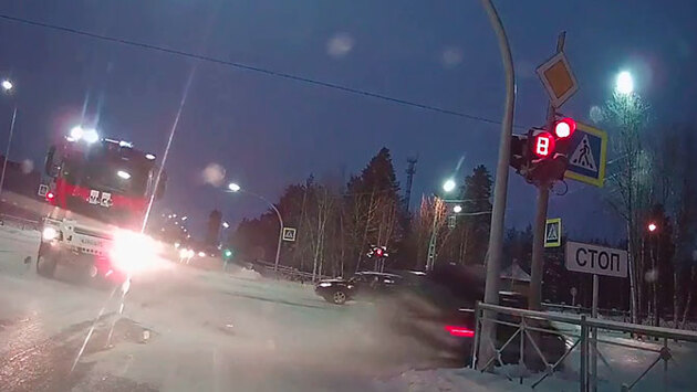 Легковушку «отрикошетило» в столб после ДТП с пожарной машиной: видео