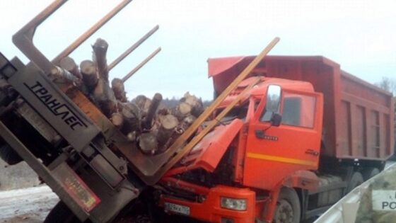 Два лесовоза и самосвал столкнулись на трассе под Калугой