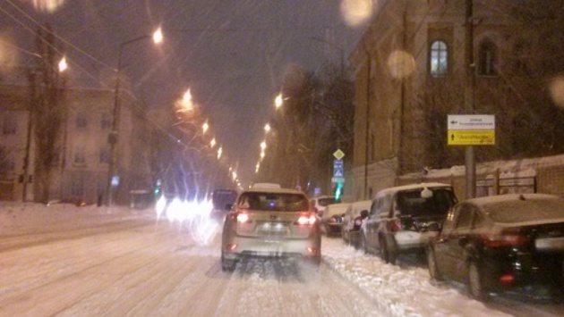 Метель. Саратов и Энгельс стоят в десятибалльных пробках