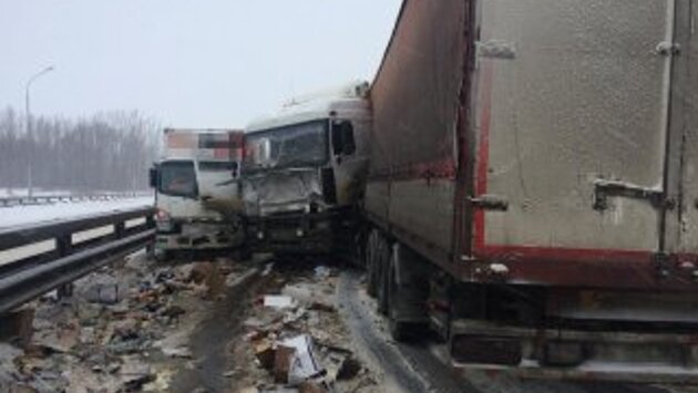 В Башкирии на трассе произошла массовая авария с участием грузовиков