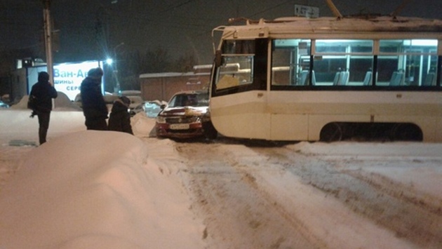 В Саратове трамвай врезался в легковушку. По свидетельству горожан, автомобиль Renault Logan выехал на рельсы перед близко идущим трамваем. Как сообщили «АиФ-Саратов» очевидцы, ДТП произошло около 7 часов утра возле остановки «улица Соколовая». Было парализовано движение трамваев №3 в сторону Мирного переулка. Очевидцы утверждают, что на этом участке снежные отвалы не позволяют увидеть выезжающий из-за поворота трамвай.
