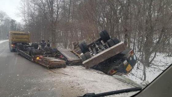 Под Гвардейском экскаватор упал с тягача в кювет