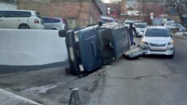 Во Владивостоке произошло необычное ДТП с опрокидыванием