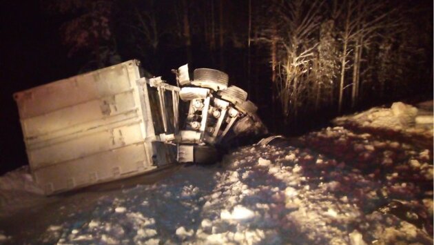 На «Коле» грузовик съехал с дороги, пострадал один человек