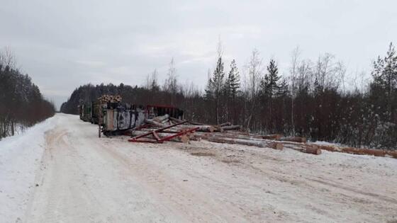 Большегруз с древесиной опрокинулся на Вологодчине, есть пострадавшие