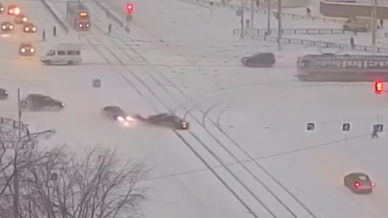В Магнитогорске после столкновения двух легковых автомобилей подрались участники аварии. Авария и потасовка попала на видео, снятое камерой наблюдения. Инцидент произошел на перекрестке улиц Карла Маркса и Грязнова: водитель поворачивающего автомобиля не убедился в безопасности своего маневра и зацепил несущуюся на разрешающий сигнал светофора легковушку. Подбитую машину занесло, она вылетела на встречную полосу и, чудом не задев других участников движения, остановилась. Из нее выбежал водитель и без лишних слов набросился на водителя, которого посчитал виновником аварии. После недолгой, но ожесточенной потасовки, участников ДТП удалось разнять. В результате инцидента никто серьезно не пострадал. В настоящее время сотрудники ГИБДД разбираются в обстоятельствах аварии.