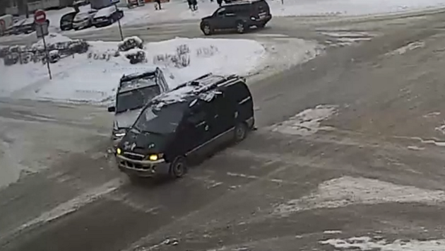 Столкновение микроавтобуса и полицейского УАЗа попало на видео