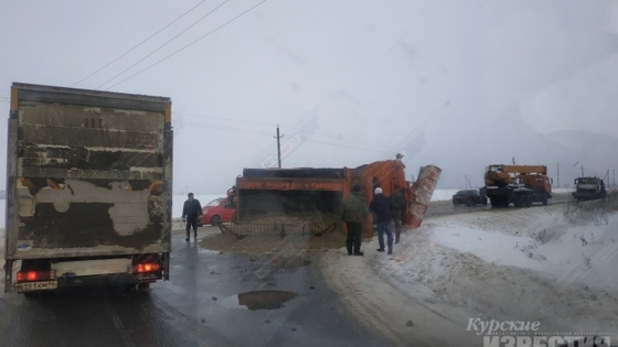 ЧП произошло около 11 утра. Свидетелями аварии стали подписчики группы Вконтакте АВТОКАДР_46. По предварительным данным причиной аварии стали сложные погодные условия. Информация о состоянии водителя уточняется.