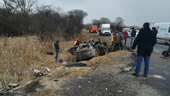 В субботу, 9 февраля, неподалеку от Минеральных Вод в Ставропольском крае произошло серьезное дорожно-транспортное происшествие, унесшее три жизни. Последствия страшной аварии сняли на видео. По предварительной информации, автомобиль BMW врезался в КамАЗ, водитель которого остановился, чтобы совершить поворот. В результате аварии погибли три человека, еще двое – оказались в реанимации. Все пострадавшие находились в салоне легковушки, сообщает пресс-служба регионального УГИБДД РФ.
