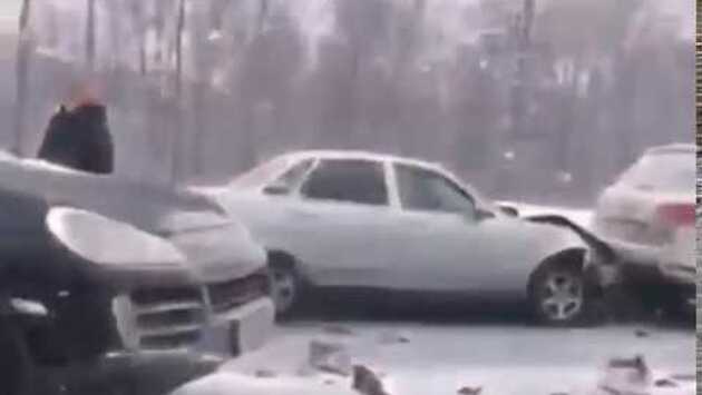 Эксклюзивное видео: еще одно ДТП участием 12 автомобилей произошло на Волжском шоссе в Самаре