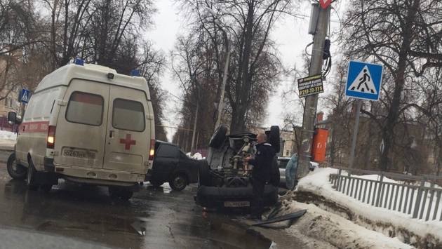 В ГИБДД не обращались: на проспекте Ильича легковушка после ДТП перевернулась на крышу